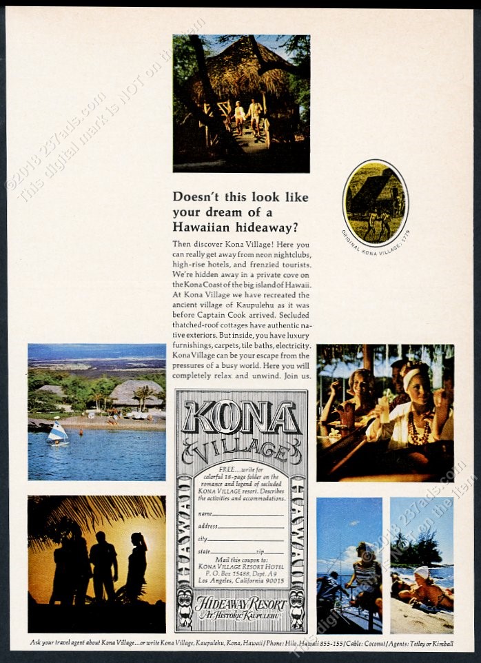 Details About 1967 Kona Village Resort Hawaii 6 Color Photo Vintage Print Ad